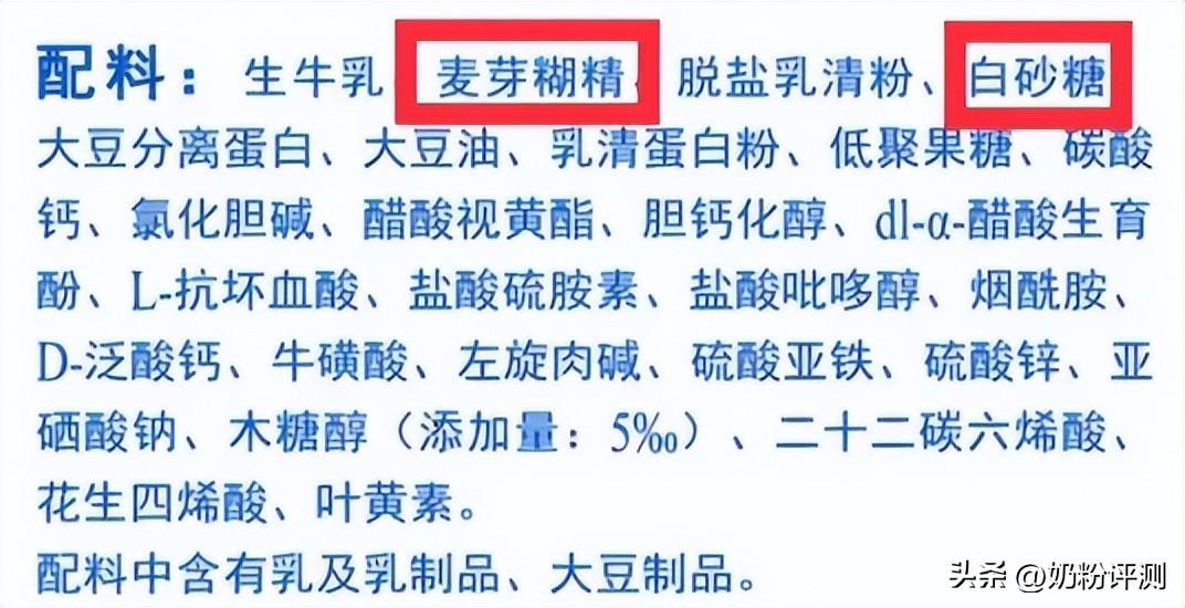 另外,完达山元乳系列在4段中还添加了麦芽糊精和白砂糖,麦芽糊精的添加会使得乳糖在碳水化合物中的占比降低,而麦芽糊精的营养不及乳糖高,所以在一定程度上会影响奶粉的营养价值。